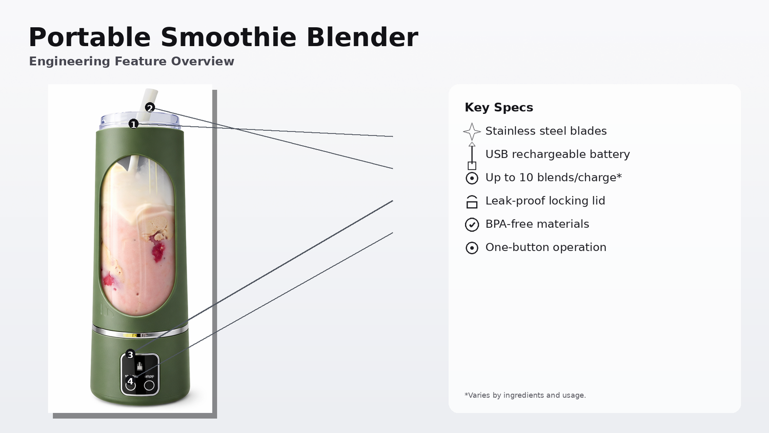 Up to 10 blends per full charge.